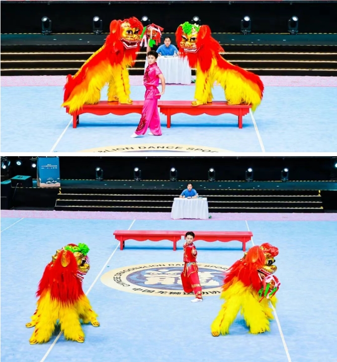 比賽現場,舞獅隊員們跟著節拍,個個身手矯健、配合默契。彩獅搖頭擺尾,眨著銅鈴大眼,獅身翻卷如浪,繡球一拋便凌空翻躍,一連串動作惟妙惟肖,將獅子的靈動與威嚴展現得淋漓盡致,精準有力的動作贏得現場觀眾陣陣喝彩。