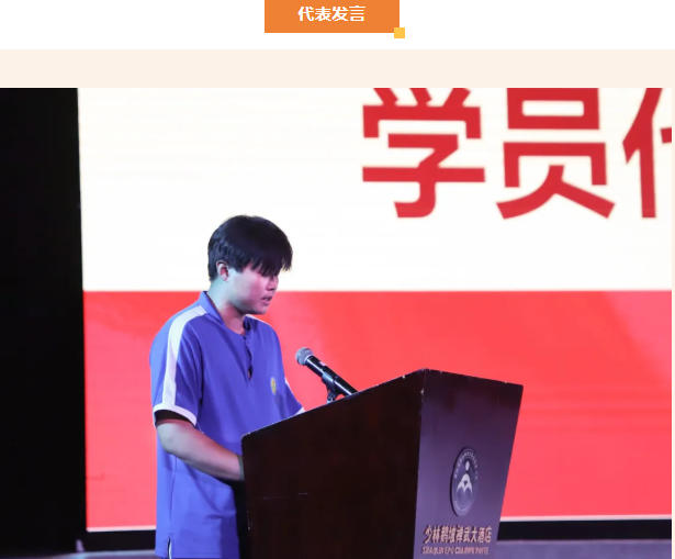 校長梁少宗發表熱情洋溢的致辭。他指出,一個多月來,同學們從剛入班時動作生疏,到如今能完整打出一套拳術,從怕苦怕累時偷偷抹眼淚,到訓練中主動喊出“我能行”,這份蛻變不僅是武術技能的提升,更是意志品格的成長。清晨六點的堅持、主動加練的較真,這些用汗水澆灌的"武功"才是最珍貴的收獲。梁校長感謝教練團隊把“武德為先”的理念,融進了每一次示范、每一句叮囑。結業不是終點,而是新征程的起點,他希望同學們帶著這個夏天學會的堅持與自律,銘記團隊并肩的吶喊,帶著這份“武德”精神,在未來的路上,披荊斬棘,溫暖待人,成長為更好的自己。