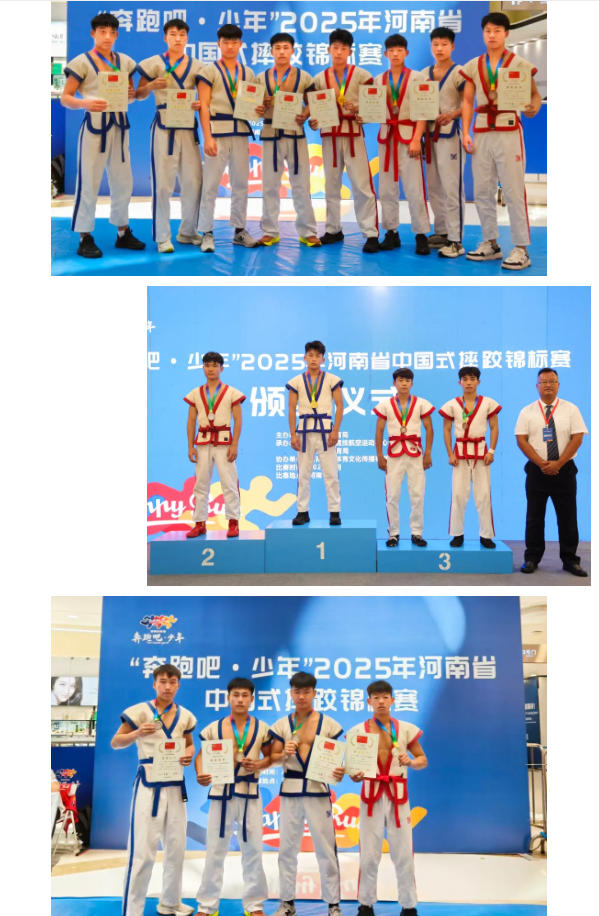 緊隨其后,8月16日至21日,由河南省體育局主辦的“奔跑吧?少年”2025年河南省中國式摔跤錦標賽在鄭州萬達(高新區店)火熱開賽。這場匯聚了全省14支勁旅、246名頂尖運動員的激烈角逐中,我校健兒們憑借著頑強不屈的堅韌意志與扎實過硬的專業功底,再度斬獲佳績,為學校再添榮光。
