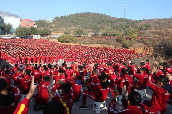 創辦人健步登上主席臺,向萬名學子揮手致意。校委會全體領導并排在主席臺站定,與師生們同聲高唱“鵝坡武院之歌”,共同歡呼又一次舉辦盛大的運動會。