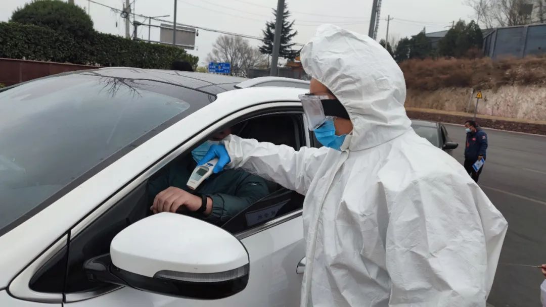 入校前進行體溫測量及酒精消毒