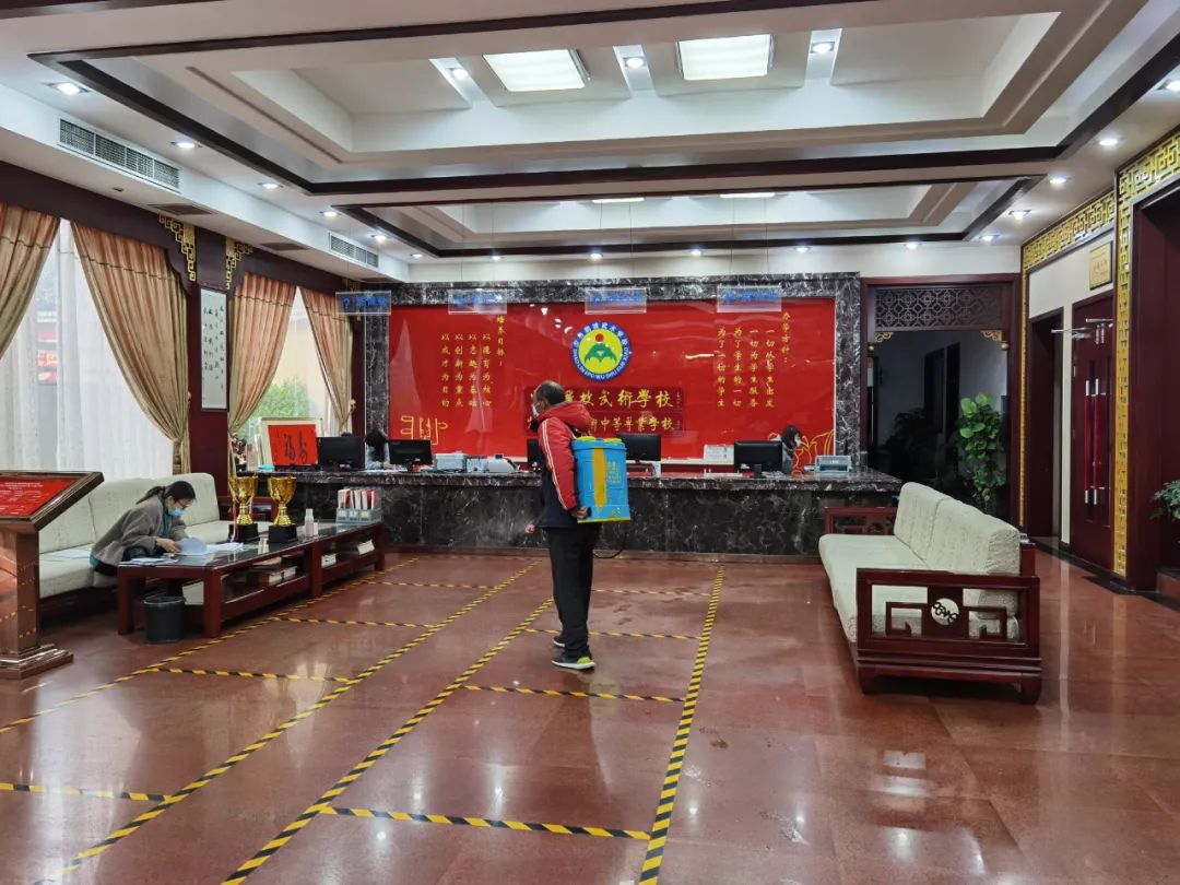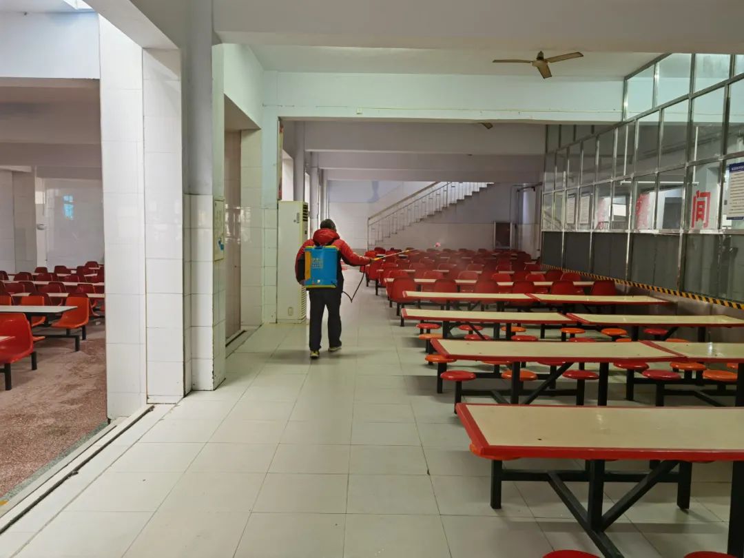 ? 為做好春季開學返校前疫情防控工作,給全校師生一個安全衛生的學習、生活環境,鵝坡武校在校職工嚴格執行校園疫情防控要求,堅持每天對校園、宿舍、走廊、餐廳、廁所、辦公室等場所進行打掃、消殺、通風,不放過一處,創建安全衛生的美麗校園。