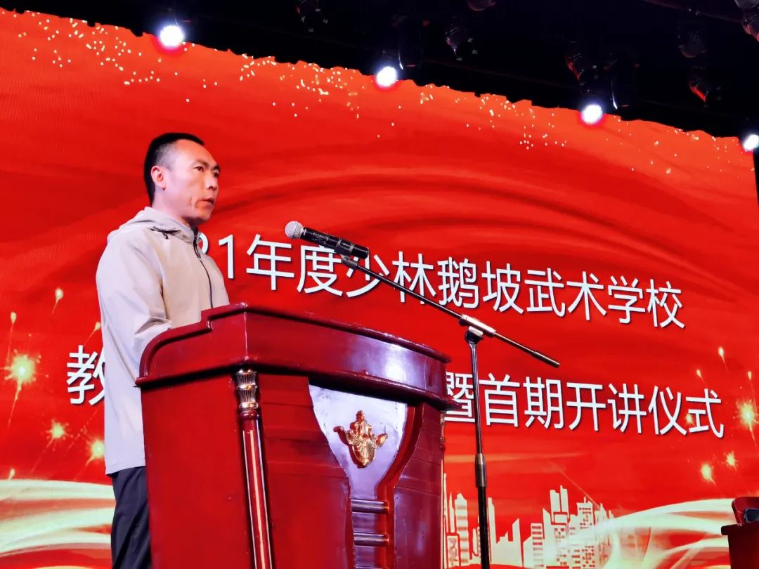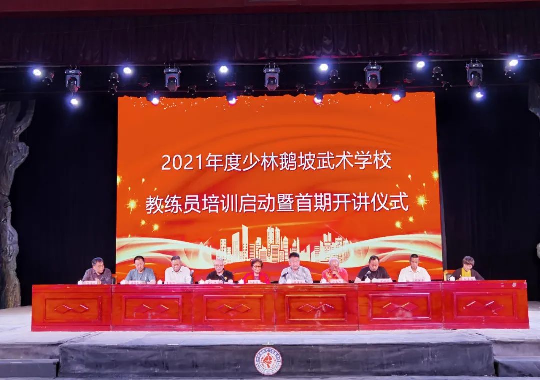 鵝坡的特色是武術,武術的傳承靠教練。沒有不好的學生,只有不好的教練。為積極落實董事長對鵝坡武校做大、做強的戰略規劃,進一步推動鵝坡武校高質量發展,全面提升教練員的綜合素質,把鵝坡武校武術特色教育、專業技術訓練的名片擦亮做實,5月11日下午,鵝坡武校在禪武大酒店展武堂舉行了2021年度少林鵝坡武術學校教練員培訓啟動暨首期開講儀式,全體教練員及培訓班隊員參加。