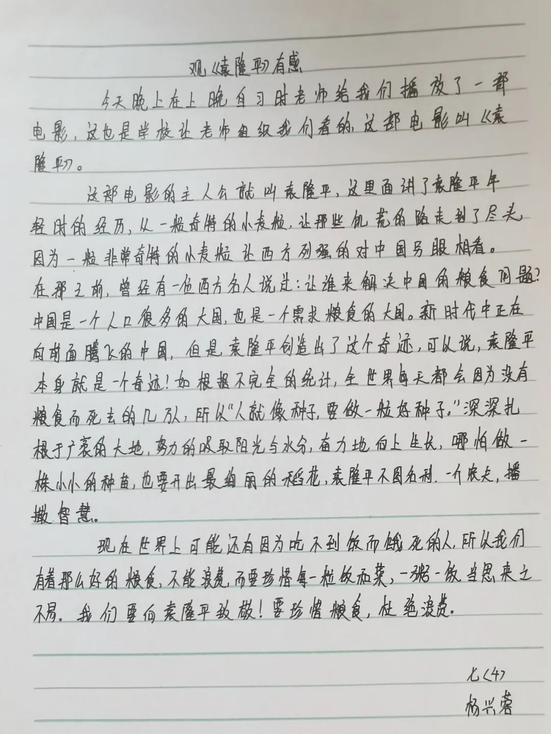 袁隆平院士曾經說過:“人就像一粒種子,要做一粒好的種子。”愿每一位鵝坡學子,都能像袁隆平院士一樣,從小樹立報國之志,把個人理想與祖國和人民的利益聯系起來,努力學習,刻苦訓練,長大后為實現中華民族復興的偉大夢想貢獻自己的力量!