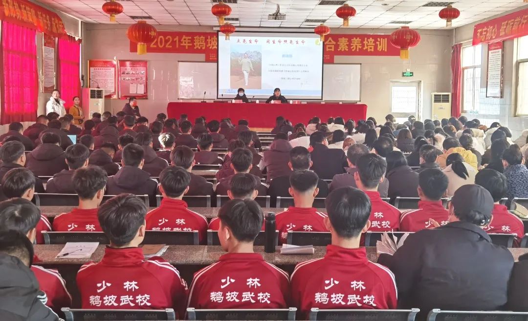 根據登封市教育局關于加強武術學校教職工心理健康教育的指示精神,踐行“以職工心理健康為中心”的理念。12月3日下午,鵝坡武校在3號樓大多媒體會議室舉行了主題為“點亮生命 用生命照亮生命”的心理健康培訓,授課人登封市教師進修學校老師郝瑞麗。登封市教育局武術科副科長張瑞麗、范占現出席了培訓會,張科長做現場致辭,培訓會由校長助理趙一琳主持。鵝坡武校330余名職工參加了此次培訓。