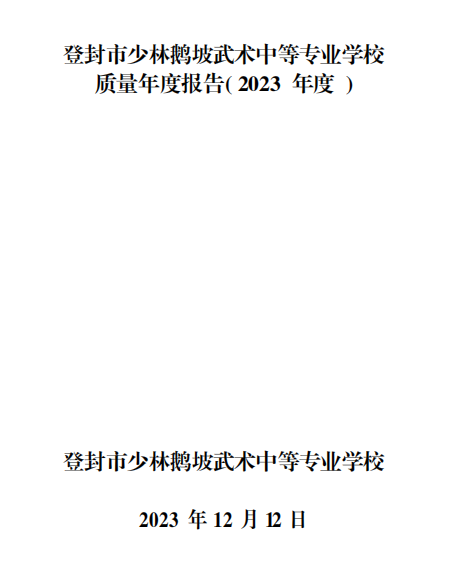 登封市少林鵝坡武術中等專業學校質量年度報告(2023 年)